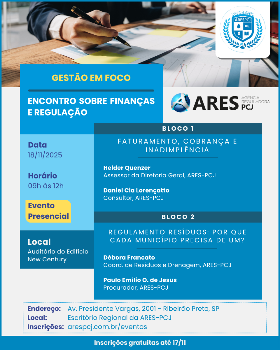 A Academia ARES-PCJ convida para um evento gratuito no dia 18 de novembro, das 9h00 às 12h00, com palestras essenciais para gestores. Confira a programação: