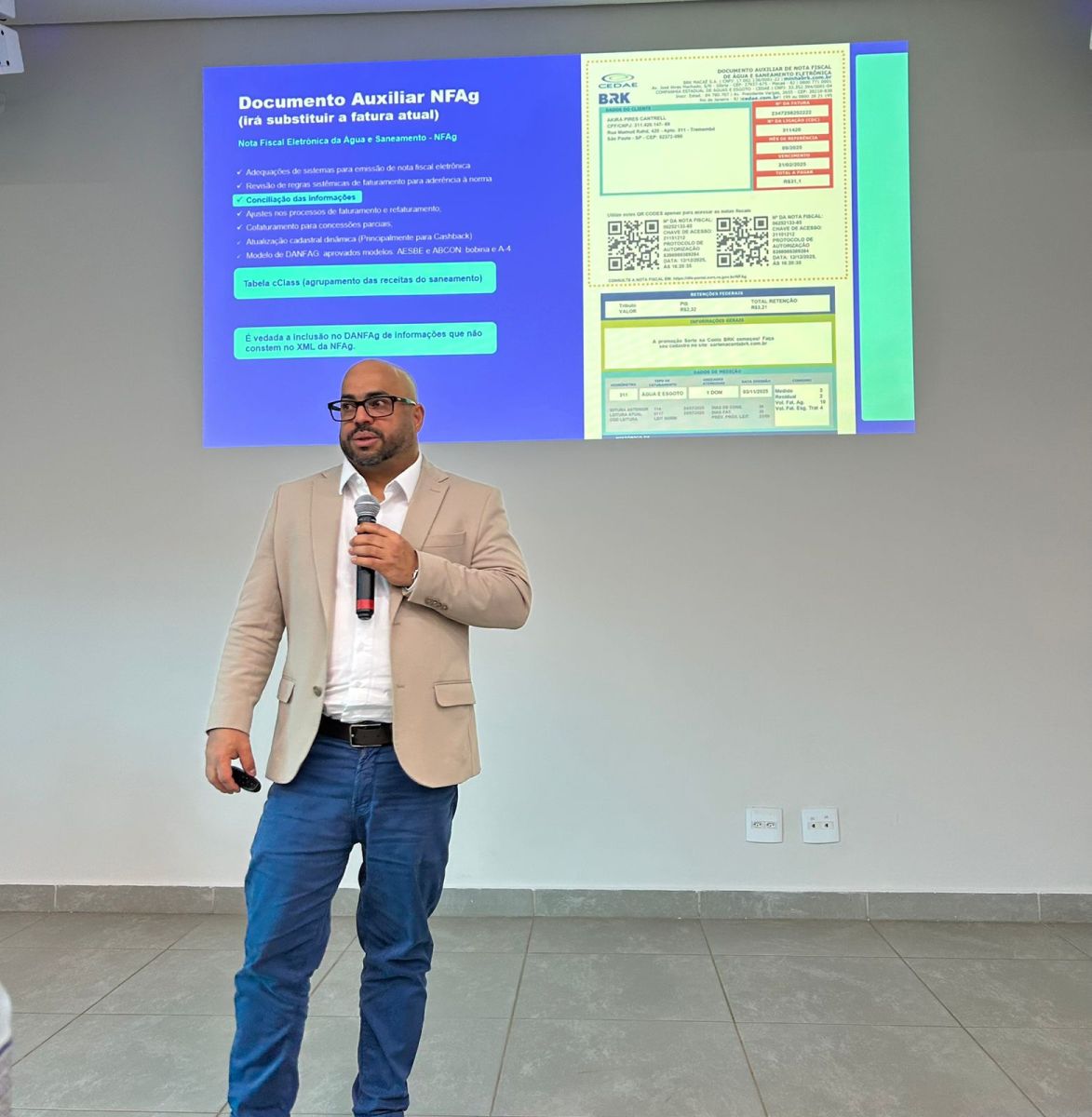 Um ponto de atenção crucial levantado pelo representante da BRK é o saneamento e a atualização cadastral, que precisa incluir o CPF/CNPJ dos usuários para evitar a rejeição das notas fiscais no momento da transmissão. Além disso, destacou-se a necessidade de um plano de comunicação intensivo com os usuários nos meses de novembro e dezembro, para que estes não rejeitem o novo formato do DANFAg por receio de fraude, prevenindo assim a inadimplência.