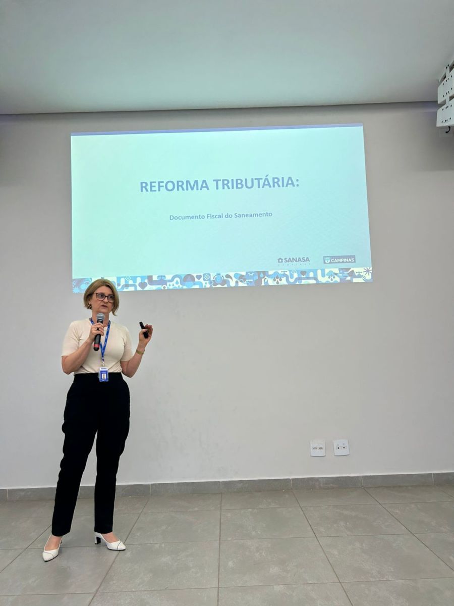 Em seguida, Cláudia Aparecida Sartori Marques, Coordenadora de Contabilidade Fiscal da SANASA, endossou o nível de dificuldade e o serviço intenso pela frente. Ela alertou sobre a complexidade da prorrogação total do prazo de 1º de janeiro de 2026, visto que a obrigatoriedade foi estabelecida por Emenda Constitucional, embora haja rumores de uma entrada faseada ao longo de 2026.