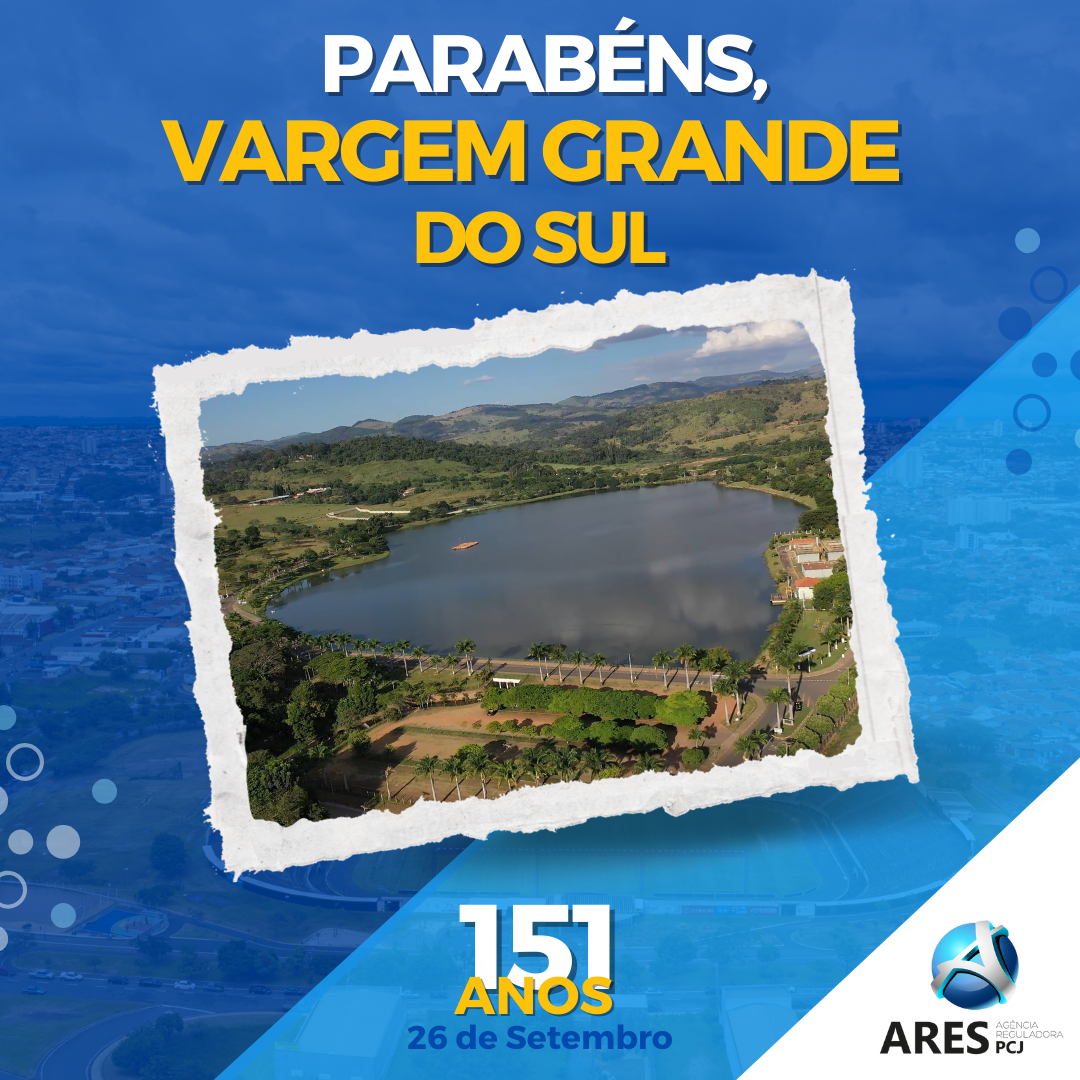 A Agência Reguladora ARES-PCJ parabeniza a cidade de Vargem Grande do Sul pelos seus 151 anos de fundação! O município, que comemora seu aniversário em 26 de setembro, é associado à ARES-PCJ desde 2024, tendo os serviços de saneamento básico prestados pelo SAE (Serviço Autônomo de Água e Esgoto de Vargem Grande do Sul).